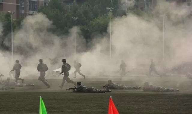 之后,此次汇报表演的汇报部分正式开始。军训旅以连为单位,分战术要求进行不同科目的汇报表演。